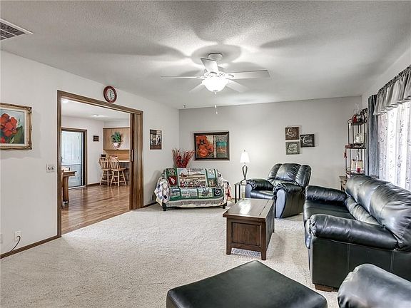Move in ready in excellent condition. Spacious open living / dining & Kitchen areas offering an abundance of space for your family & family gathers. Oversized dining area is open to kitchen yet separated by a breakfast bar, updated appliances & plenty of cabinet / counter space. Large living room that's open to dining area & front entry. Off kitchen is a enclosed sun room, perfect as a breakfast nook or reading/sitting area to relax. Over sized master bedroom with 2 deep closets. Master bath offers a corner single vanity & walk-in shower. Spacious inside utility room with food pantry closet & counter / sink area. Black & white tiled spacious guest bath with single vanity & tub-shower. New Lennox heat/air in 2013 & new water heater 2013. approx. Roof 2010 approx. Garage white refrigerator will stay.