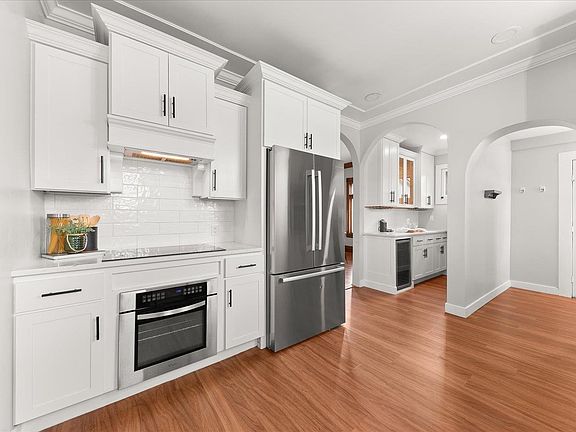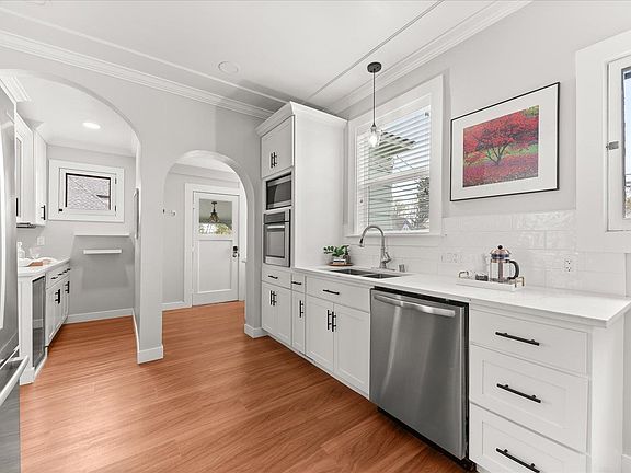 This beautifully updated Craftsman home is like something out of a magazine and a half mile to Gonzaga U! Featuring 4 bedrooms, 2 baths, original woodwork, and newly refinished hardwood floors, this home is full of character. The spacious living and dining areas are bathed in natural light, while the remodeled kitchen boasts white shaker cabinets, quartz countertops, a beverage bar w/ wine fridge, stainless steel appliances, and elegant archways. Recent upgrades include a new roof, HVAC, AC, exterior paint, new carpet, attic insulation, & sprinkler system. Relax on the covered front porch or enjoy the private backyard with a storage shed, raised garden beds and firepit area. Located in a desirable Spokane neighborhood, close to GU, parks, downtown, and dining/shopping. Great for 1st home, investor, AirBNB. Come see this beautiful Gonzaga craftsman!