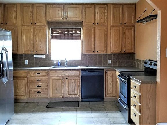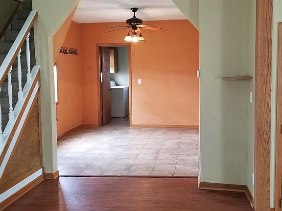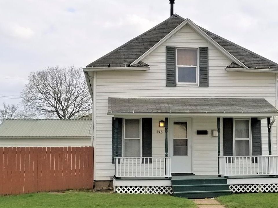 Come home to this beautifully updated 1 1/2 story home with a 3 car detached garage. The mostly open floor plan allows a lot of natural sunlight. The main floor has a large living room with a gas stove to cozy up to during the chilly evenings, a large open eat in kitchen has a lot of cabinet space, pot holder above the stove, and a doggie door to the large privacy fenced back yard, laundry room and a full bath. The Upstairs has 2 bedrooms with walk-in closets. There is potential for a 3rd bedroom on the main level. Off the covered back porch, the privacy fenced in back yard has a large grassy area, cement patio, and a dog kennel with doggie doors that lead to a specially designed area in the garage. The garage is accessed by the alley behind the home. The property is near YMCA, John Deere, and the Quick Trip.