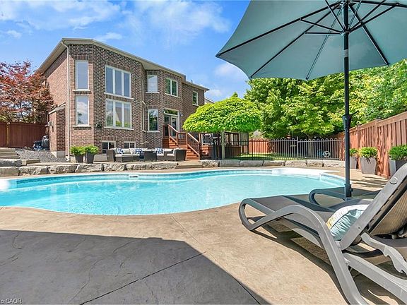 Welcome to 918 Fung Place, Kitchener, nestled in the highly sought-after Idlewood/Lackner Woods neighbourhood. Tucked away on a quiet court in a peaceful cul-de-sac, this exceptional detached home makes a striking first impression with its charming curb appeal, lush landscaping & generous parking for 4 vehicles: 2 in Garage, 2 in driveway. Step inside to a grand foyer with soaring 9ft ceilings & a carpet-free main level. The heart of the home is the breathtaking great room with 18-ft high ceilings, floor-to-ceiling stone fireplace, expansive windows, 8ft High Doors, custom crown moulding & beautifully finished trim work throughout. The modern kitchen features premium SS Appliances, ample cabinetry, chic backsplash & clear view of backyard paradise, while the adjacent dining area is perfect for family meals. A convenient main floor laundry room & a stylish powder room add further functionality. Upstairs, you’ll find 4 spacious bedrooms & 2 full bathrooms. The primary suite complete with a large walk-in closet & luxurious 5pc ensuite. The remaining bedrooms are generously sized with their own spacious closets & a shared bathroom. The unfinished basement features impressive 9-ft ceilings & offers endless possibilities: whether you envision a home theatre, gym, rec room, or personal retreat, the space is yours to design. Step outside to experience your own private resort-style oasis. The backyard is a true show-stopper, boasting an 18 x 36-foot;8ft deep saltwater in-ground heated pool, complete with a new water heater installed in 2023. Relax year-round in hot tub, perfectly sized for 6 or more people or entertain on the large deck that’s ideal for summer BBQs & family gatherings. There’s also plenty of green space for kids or pets to play. Located just minutes from Chicopee Ski Hill, top-rated schools, scenic parks, shopping plazas, public transit & easy access to Highway 7/8. Don’t miss your chance to own this stunning family home, Book your showing Today!