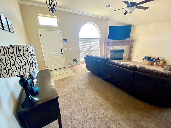 This is the house you been waiting for! This spacious floor plan includes 4 bedrooms, 2.5 bath, 2 living areas, 2 dining areas with a 3 car garage on a corner lot! This corner lot home has one of the largest yards in the area. The kitchen features a upgraded gas stove, granite counter tops, a pantry, and two bar areas. The master bedroom has a large walk in closet and a master bath with a garden tub and separate shower. A storm shelter is located in the garage floor. Two patios located on the north and east sides of the house.