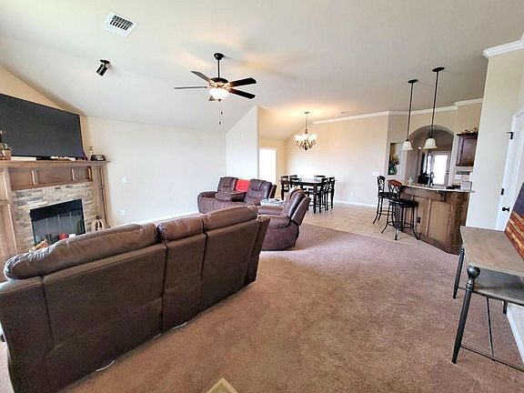 This is the house you been waiting for! This spacious floor plan includes 4 bedrooms, 2.5 bath, 2 living areas, 2 dining areas with a 3 car garage on a corner lot! This corner lot home has one of the largest yards in the area. The kitchen features a upgraded gas stove, granite counter tops, a pantry, and two bar areas. The master bedroom has a large walk in closet and a master bath with a garden tub and separate shower. A storm shelter is located in the garage floor. Two patios located on the north and east sides of the house.