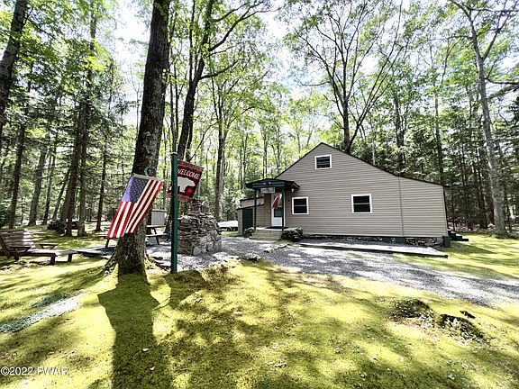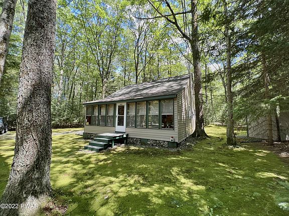 PA State Cabin in the perfect spot with updated roof, electrical, siding, and windows! The home is set back off the road & there's plenty of outdoor & indoor space to enjoy (Walking distance to Promised Land beach). Promised Land's trail head is directly next to the house for easy access to hiking, biking, horse back riding, & snowmobiling! The home features a nice living room w/ a propane fireplace, 2 bedrooms on the main level with a large kitchen/dining area, a bathroom, and a nice sleeping loft with a stairway, perfect for kids or adults! The home also has an enclosed front porch with nice wood finishes. Enjoy the outdoor fire pit & eating area. Also included are 2 bikes and a crestliner fishing boat. Furniture included also! PA residents only, Beds Description: 2+Bed1st, Baths: 1 Bath Level 1