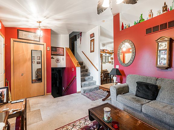 Prime Maple Terrace Location! Situated right next to Larson Park and scenic walking paths, this spacious home offers three finished levels plus a basement providing exceptional value and flexibility. Featuring 4 bedrooms and 2 full bathrooms, the home includes hardwood floors in the kitchen and dining area, with glass doors that open to a private patio and expansive backyard. The kitchen is equipped with Corian-style countertops, oak cabinetry, a breakfast bar, and all included appliances. The main floor living room boasts vaulted ceilings, creating a bright and open feel throughout. Upstairs, the primary bedroom includes a walk-in closet, accompanied by two additional bedrooms and a full hallway bath. The lower level offers a large family room, a fourth bedroom or office, and a second full bath perfect for guests or extended family. The basement includes laundry hookups (washer & dryer included), mechanicals, and a room ideal for a hobby room, office, or additional storage. Enjoy a beautiful, park-like backyard that directly adjoins Larson Park offering privacy and direct access to outdoor recreation. Whole home warranty being offered with home sale for peace of mind.