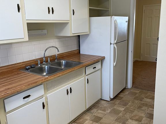 One bedroom flat with detached garage and opener, locked common entry and basement with washer/dryer hookups and a locking storage bin. Carpet throughout, blinds entire, decorative fireplace with mantle in the living room and central air conditioning. Kitchen has range and refrigerator. Bathroom has a newer shower surround that can ONLY be cleaned with mild non-abrasive detergent. Resident pays gas, electric and water. The resident is responsible for all utilities We have a strict no pets policy We do participate in the section 8 program