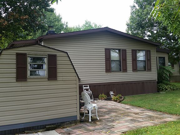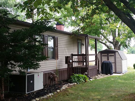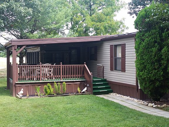 This is a Redman home which back up to a field. Walk up to a covered 11 x 16 front porch and enter into four season room. Main living area is an open floor plan with master suite on one end and bedrooms 2 and 3 at opposite end. Custom bar installed at kitchen (stools included). Kitchen has ample cabinet space. Roof and major mechanicals are 2012 or newer Appliances included are refrigerator, gas range, dishwasher, trash compactor, washer and dryer. A water purifier is located at kitchen sink. Master Suite includes garden tub shower with vanity. Separate laundry room with cabinets above washer and dryer. Private entrance off of laundry leads to small covered deck. Steps lead to paver patio and shed. An 8 x 10 shed is included.