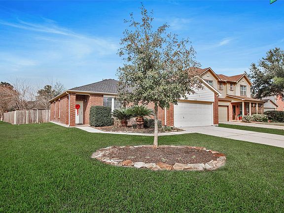 Rare find! Beautiful updated one story brick home on a corner lot close to The Woodlands, Exxon, HP, shopping. Split floorplan features Ceramic tile floors, new carpet, freshly painted, new range and microwave, LED lighting and all new blinds. Kitchen and breakfast with cute breakfast bar is open to the spacious family room. The kitchen and bathrooms have gorgeous quartz counter tops. The large primary bedroom in the rear features a huge walk-in closet. The secondary bedrooms at the front of the home share a full bathroom. The home also has a separate laundry room, new carpet & kitchen appliances (4/2021), generous 2 car garage and a massive deck for weekend barbecues. The roof was replaced in 2021! You will love the amenities of this community including a large park with new playground equipment, pavilion with outdoor grills and a lovely amenity lake. Your commute will be easy in every direction via 99, Hardy Toll Road and I-45.