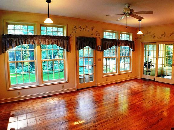 Paul Schaefer Cape Cod, stone exterior, landscaped corner lot, large windows in family room overlook in ground, heated salt water pool, double sliding glass doors to screened in porch. first floor bedroom, abundant storage, many built ins, radiant floors in both full baths, high efficiency furnace with humidifier, central air