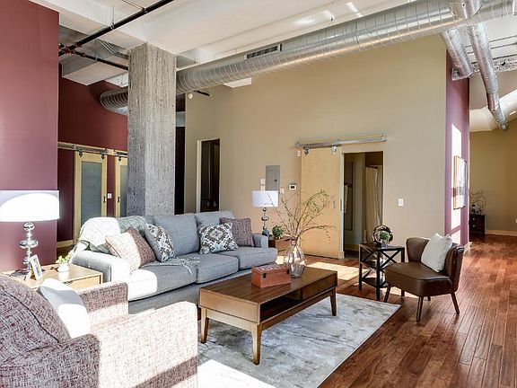 This gorgeous two bedroom, two bathroom unit can be found in the Heart of the North Loop at 918 Lofts. This unit has 1 surface parking space and 1 covered spot in the garage! Bring your dogs down the street to the dog park and walk to your favorite places in the North Loop!