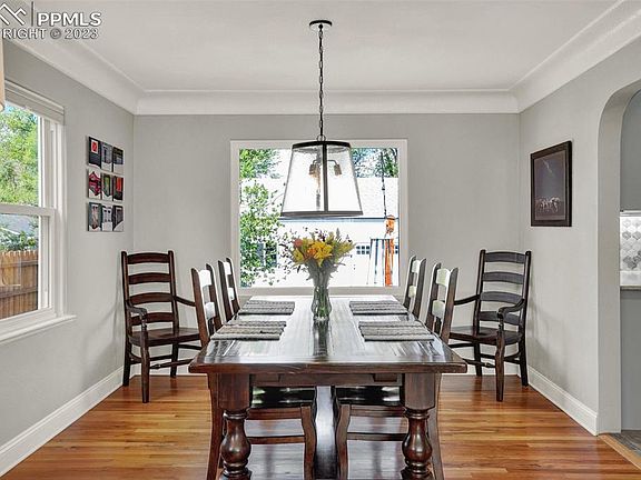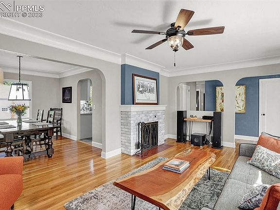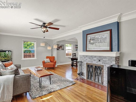 Visit this charming 1940’s home near downtown Colorado Springs that has been beautifully remodeled with a warm pallet of sophistication and style. The tree-lined streets and quaint front porch welcome you. Step into the sun filled living room featuring coved ceilings, hardwood floors, fireplace, and large bay window. A chef’s delight, the beautifully appointed kitchen boasts upgraded appliances, quartz counters, tile backsplash, and abundant cabinet and counter space. The elegant dining room features a large picture window that overlooks the backyard. The primary bedroom provides two closets. The adjacent full bathroom has been beautifully updated. There is a generously sized secondary bedroom on the main floor. Unwind in the lower-level spacious family room. The office adjoins a third bedroom. A second remodeled bathroom and storage complete the lower level. The back yard is an oasis offering a sprawling stamped concrete patio overlooking the back yard with the soothing sound of the water feature. The newly built oversized four car garage with huge workshop is sure to please the hobbyist in your household. You will love this true walking neighborhood located just blocks from Boulder Park, Switchback Coffee Shop, and UC Health/Memorial Hospital. Centrally located within a short ride to shopping, dining, and entertainment downtown. Set your showing today and be prepared to call this one HOME.