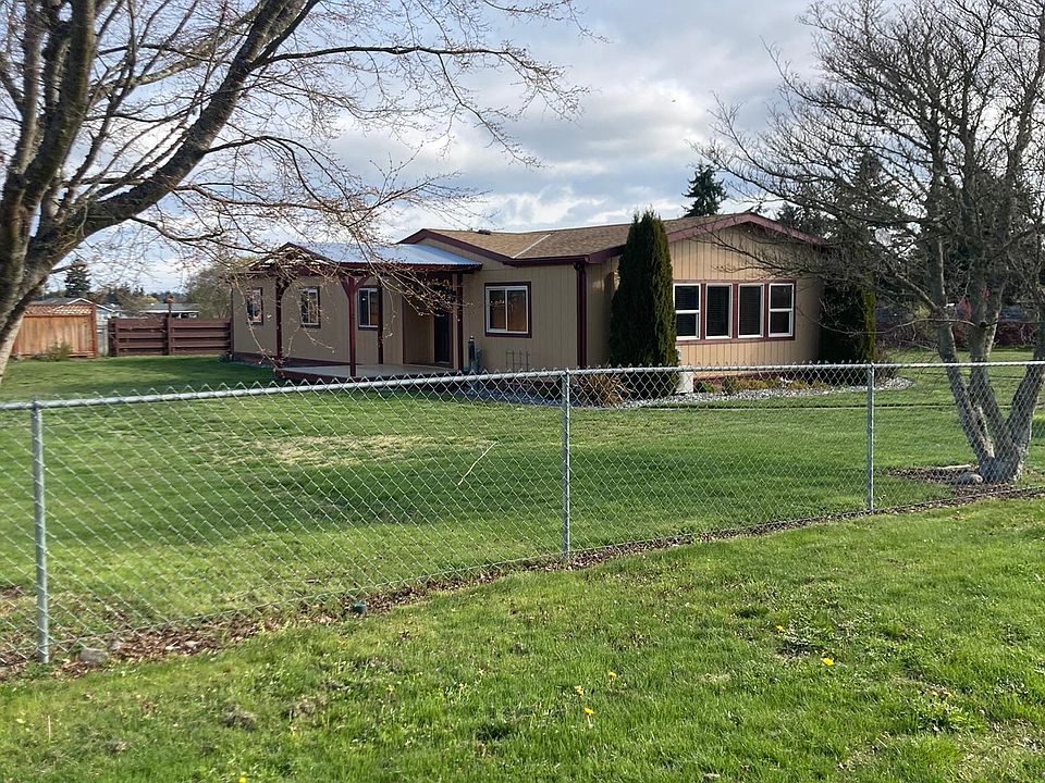 Covered patioPartial mountain viewWell-manicured yardEstablished orchardRaised garden bedsComfortable living spaceFully fenced backyard