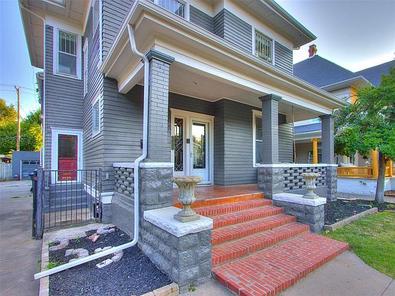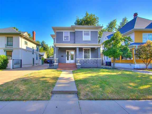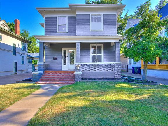 A historic renovated masterpiece located in the heart of the coveted Mesta Park neighborhood! Incredible artistry, tall celings, stunning wood work, and tons of historic charm right when you walk in the door. Offering 3 full bedrooms and 3 full bathrooms including an office area! Beautiful wood staircase and banister with a stained glass window leading to an upstairs landing. Classy office space with tall wood pillars, built-ins, and an abundance of natural light. Spacious living room with the original wood fireplace as the focal point. Large dining room perfect for family gatherings. Renovated kitchen with white cabinets, granite counter tops, pantry space, gas stove, a butlers pantry off the kitchen, and vintage ceiling lighting straight out of a storybook. Upstairs offers a luxury executive bedroom oasis with an en suite bathroom complete with a remodeled walk-in shower fit for a king, and a large walk-in closet. An additional two guest bedrooms upstairs with a view. Full bathroom with a walk in shower, and a white clawfoot tub. Sizable upstairs laundry room and a separate storage area with closets. Full guest bathroom downstairs with a tub and shower. Wine cellar to display your favorite beverages. Dreamy backyard with a wood deck perfect for entertaining friends, gas grill, unique one of a kind wall mural, and a peaceful water feature to help relax after a long day. Detached 2-car garage with a remote opener. Sit back and enjoy the front porch swing while overlooking one of the most beautiful streets in all of OKC. Award winning Wilson Elementary school. Walking distance to Harn Park, and Midtown shops and restaurants. Schedule your showing today!
