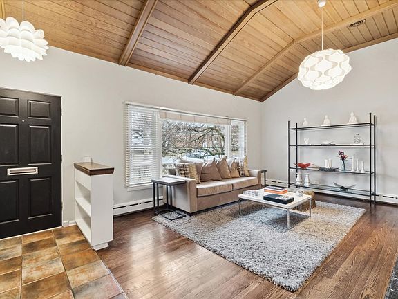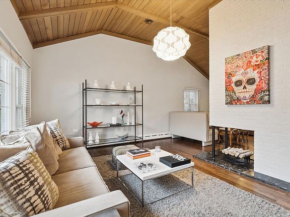 Multiple offers have been received. Highest and best is due by Sunday, March 9 by 5pm. Move-in ready 3-bedroom, 2 1/2 bath home in the highly sought-after Northeast Deerfield neighborhood - just minutes from town and the train! Designed for both comfort and entertaining, this home features an open floor plan where rooms blend seamlessly. The main level boasts an L-shaped living and dining room with a vaulted, wood-beamed ceiling, hardwood floors, a striking two-sided fireplace and contemporary Orb light fixtures. The dining area flows into a sunroom with a wall of windows and French doors leading to a wood deck and fenced backyard. The kitchen offers wood cabinetry, granite countertops, stainless steel appliances, tile flooring, breakfast area and a planning desk. A convenient powder room completes this level. Downstairs, the spacious family room features hardwood floors, a built-in wet bar and direct access to the backyard. Upstairs, the primary suite features hardwood floors, great closets and an updated en-suite bath with large shower, sink plus vanity area. Two additional bedrooms, also with hardwood floors, share a hall bath. The finished basement provides additional living space with a recreation room and ample storage. Professionally landscaped backyard offers deck and plenty of space to relax or entertain. Don't miss this fantastic opportunity to call this beautiful Deerfield home your own!