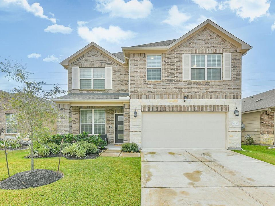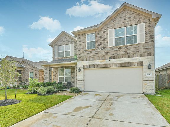 This 2021 built two story home offers 2764 square feet with 4 bedrooms and 3.5 baths in the Glendale Lakes community of Rosharon. The layout includes a formal dining room, an open concept kitchen with espresso cabinetry, granite countertops, and a large casual dining area that connects to the main living space. Ceramic tile flooring spans much of the first floor, with a second level designed for additional bedrooms and flexible living. The fenced backyard includes a covered patio for outdoor use, and the brick and stone front elevation adds curb appeal. The home is zoned to Fort Bend ISD and provides convenient access to the Houston Medical Center, Galleria, Hobby Airport, and nearby shopping and restaurants. The property also offers the opportunity to assume an existing VA loan subject to lender requirements.