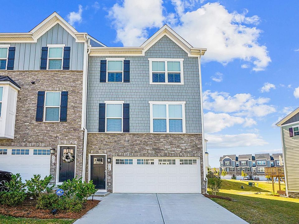 Better than new 2022 corner end unit with extra side windows. This End Unit 3 story townhome offers a great open living concept with lower level Finished Rec Room,Garage painted and epoxy seal on floor. LVP flooring in Foyer and whole main level, along with a spacious Kitchen with large Island. Open floor plan living room with plenty of natural lighting and added dimmer switches and ceiling fans throughout. Dining opens onto an 8x10 deck to enjoy your beautiful summer evenings and 3 Bedrooms on the upper level. Trinity Townes is a half mile from Lake Wylie access and 1/2 mile from Model A Brewing and popular restaurants and shopping. I-77 is a short drive away for an easy commute.