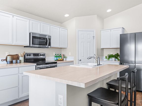 This beautiful single-level home is a well-designed 3-bedroom, 2-bath home, featuring a 1690 sq ft split-bedroom layout, vaulted ceilings, and an open floor plan that’s perfect for both everyday living and entertaining. The spacious great room flows into a stylish kitchen with a large island, ample cabinetry, and included refrigerator. A versatile flex room offers endless possibilities—use it as an office, library, or media space. The private master suite is a peaceful retreat featuring a walk-in closet, dual vanities, and a walk-in shower. Additional highlights include washer and dryer, no backyard neighbors for added privacy, a large garden space for your green thumb, and hard-to-find RV parking. Located in a quiet, welcoming neighborhood, this home blends space, comfort, and flexibility in one convenient package. Don’t miss your chance to own this truly move-in ready gem in Middleton! Owner/Agent