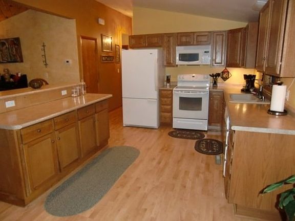 This home has a great floor plan for entertaining! The super large dining area will be perfect for family meals or special gatherings. The updated kitchen with large island is ideal for any cook. The vaulted ceiling makes the space feel open and bright. Relax in the living room with fireplace and patio doors looking out over the backyard. This home has been totally updated and ready for the new owner. All of the appliances are included along with a 1 year Home Warranty.