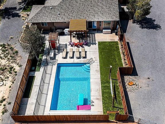 Immaculate dream home...like a resort to come home to!!! Open main floor with hickory wood floors, vaulted ceiling, plant shelves, bay window seat & lots of light. Special kitchen has top of the line stainless appliances, including wine cooler, exquisite granite treatment & entertaining size countertop. Wood trim including around vinyl windows throughout, powerful pellet stoves on both levels, & cool air suction from the basement to main floor. Ceiling fans distribute air throughout home. Enjoy the private backyard with in-ground saltwater pool, separate dog runs, & a heated and cooled 36 x 24 garage/shop plus another storage bldg. Attached, finished "party" garage is 1268 square feet, heated, & includes a separate finished storage room with sink. Laundry off the kitchen behind a barn door. Front office (nonconforming bedroom) enjoys decorator windows towards the mountain views. Almost 1.5 acres is with the home....plus the buyer of the home has first opportunity to buy the lot beside the home in the back of the cul-de-sac for a total of 3 acres. Large basement family room with adjoining game room, plus 3 large bedrooms and two part bathroom. Master bathroom features a large two headed shower with decorative tile work . Security system, air purification, in-wall speakers, central vac and more. Top notch in-ground pool with skimmers just replaced. Electric cover, all pool items included.... Close to elementary school. This home is absolutely move-in ready!