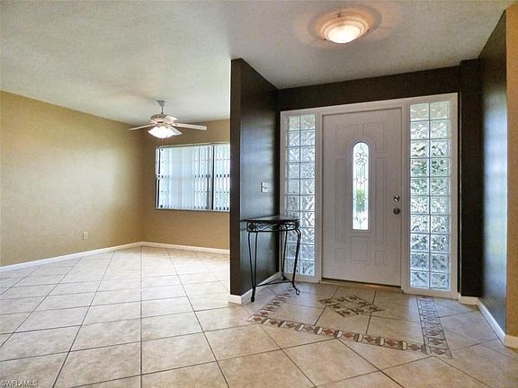 Beautiful move in ready immaculate home! Totally remodeled 3 Bedroom/2 Bath home located in a great Cape Coral neighborhood off of Country Club Blvd. Immediately you will notice the impressive stone exterior and pristine landscaping which gives you a new home feel. Extremely open floor plan which includes diagonal tile throughout the living area. The kitchen is extremely open offering visibility to entire living area. Entertain guests in the recently remodeled kitchen with a large breakfast bar and stainless appliances. Separate formal dinning, living and family rooms offer plenty of space to stretch. Both bathrooms have been updated with tile and vanities. French doors lead to an over sized tiled lanai, fenced backyard where there is plenty of room to add a pool. A/C replaced in 2016. ALL ASSESSMENTS ARE PAID IN FULL!