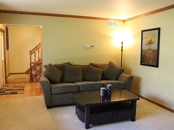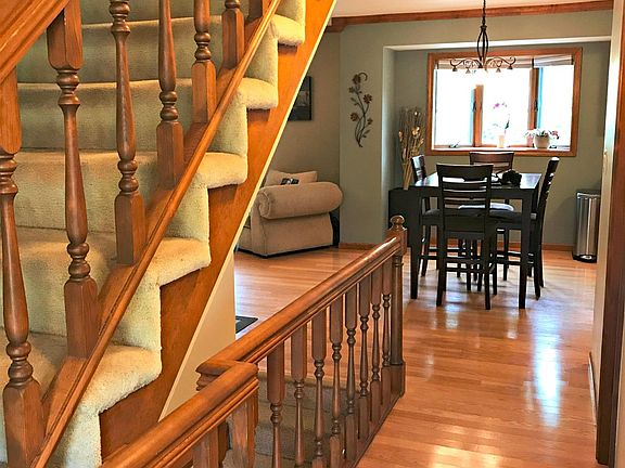 2-STORY 3 BEDROOM/3 BATH WITH FINISHED BASEMENT IN NORTHSIDE DUNELAND COVE SUBDIVISION! Formal Living Room & Dining Room with crown molding. OPEN CONCEPT Kitchen & main floor Rec Room with Fireplace, hardwood floors and sliders to rear deck. Kitchen boasts stainless steel appliances and an island. Eat in Kitchen area with bow window. Upstairs is Master bedroom Suite that is 20 x 12 with walk in closet.TOTALLY REMODELED MASTER BEDROOM BATH with ceramic shower with glass doors, new double sink GRANITE vanity, whirlpool tub,skylight AND A HEATED FLOOR!! Upstairs landing with a built in book shelf AND A.Two more bedrooms and a full bath with a skylight complete the upstairs. Downstairs has finished with a game table area and a Theater Room area complete with built in entertainment center, projection HD TV, & surround sound! Finished laundry room is 17 x 12 with built in cabinets! There is an unfinished room, used as storage that is plumbed for a bath. Furnace & AC replaced in 2016!