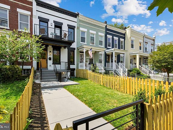 Completely redesigned and restored front porch row home in Columbia Heights. This four bedroom three and one half bath custom rebuild is the perfect blend of old world charm and modern design elements and state of the art systems. The first floor features an expansive open concept living room with new hardwood floors and exposed brick and custom metal railings.The magnificent Gourmet kitchen has defined work areas, waterfall quartz-stone surfaces, stainless appliances and ample storage. All the doors (solid wood) and windows (double thermal pane casement) have been replaced as well as the roof with cool TPO, and rear Hardie board siding. The Upper level features a master bedroom with in-suite marble bath with walk in shower, walk in closet and a private front roof deck. The hall bath services the additional two bedrooms. The rear bedroom has its own rear deck. The top floor is finished by a hallway full size washer and dryer. Hardwood found throughout the first and upper level. The lower level is a one bedroom guest or nanny suite with front and rear direct access and features an additional washer and dryer, LVP floors and a wet bar area with microwave and wine fridge; also a perfect lower level den. The rear yard features an oversized Trex deck with walkout to the rear parking pad with commercial roll up door. All systems in the home are new; electric (200 amp), Plumbing, Drywall, Insulation and Paint, duct work and dual zoned High efficiency HVAC. one for the lower level and one to service the upper two levels. This unique space is ready for the discerning buyer looking for elegant space walkable to the Metro with superb access.