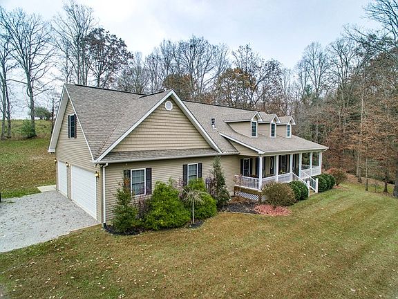 This is a super nice, solid, immaculate Cape Cod style family home. The rich warm taupe exterior is trimmed in crisp white presenting a very handsome curb appeal on a wooded 2.4 acre lot. Interior is full of our favorite features: hardwood and tile floors, 9 foot ceiling (1st floor) ,main level master suite bed/ bath (Shower, jet tub, walk in closet, double vanity) guest 1/2 bath, supersized laundry, spacious comfy great room with gas fireplace, open to dining and kitchen with bar seating and 2 car garage. Upstairs is host to 3 bedrooms (one is the bonus room) and a full bathroom.Front porch is perfectly designed for porch swings and rocking chairs to enjoy the peaceful private setting.Foundation is superior with poured concrete walls, concrete safe/storm rm, with walk out doors to the exterior.Nothing to upgrade or repair.Ready for the next family. At over 2700 ft. and 2.4 acs this one is priced right.