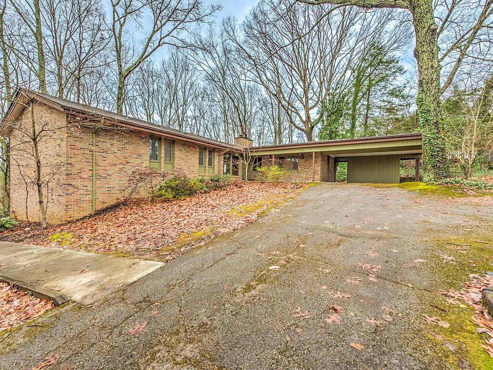 Spacious mid-century modern home situated on 1.27 wooded acres needs a new owner! Come check out the cool St. Charles kitchen, tons of windows, deck, patio, and screened-in tiled porch for watching all the wildlife and winter mountain view. Four bedrooms and two baths on the main level, and two bedrooms and one bath on the lower level with tons of extra storage rooms and large laundry room. Good-sized rooms and hallways for handicapped accessibility, hardwood floors, 2 woodburning fireplaces, laundry chute, and numerous other excellent original design features. Home being sold as-is but seller offers a one-year home protection plan; stand-alone ice maker does not work, roof (2005), and new compressor.