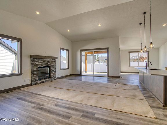 Complete 4-10-24 in the Meadow Grove Neighborhood in Post Falls, Idaho. This 2,007 Sq Ft home consists of 4 bedrooms, 2 bathrooms, laundry room, a 2 car attached garage, and a 22' by 32' Detached Shop. Spacious living room with a stacked rock gas fireplace and vaulted ceilings that lead into the kitchen. The kitchen features an island with bar seating, walk-in pantry, SS appliances, and Quartz counters. Dining room is open to the kitchen and living room with sliders allowing access to the covered patio. Enjoy carpet, closets, and windows throughout each bedroom in the home. Full yard sprinklers and landscaping. Don't miss out, this one won't last.