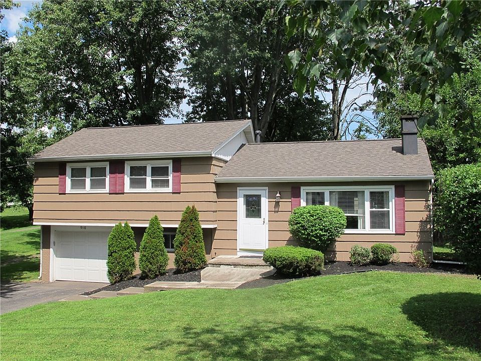 Updates abound! Fairport electric/Across the street from Village! Newer... kitchen, roof and gutters, furnace, hot water heater. New Central Air. Fenced in backyard with self-sustaining pond/water fall.... a relaxing experience.