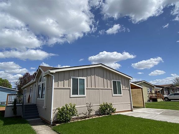2018 dbl wide Skyline Mfg home in prestine condition at Windemere Meadows Park. Open floor plan, spacious kitchen w/ natural lighting, large cabinets, walk-in pantry, farm style sink, laundry/mudroom from carport entrance. Partially fenced backyard w/ finished deck for entertaining. Wood-like flooring throughout except for 2 bedrooms w/ carpet. Walk-in closet in MB. Master bath with separate linen closet and a separate vanity. Pet friendly park