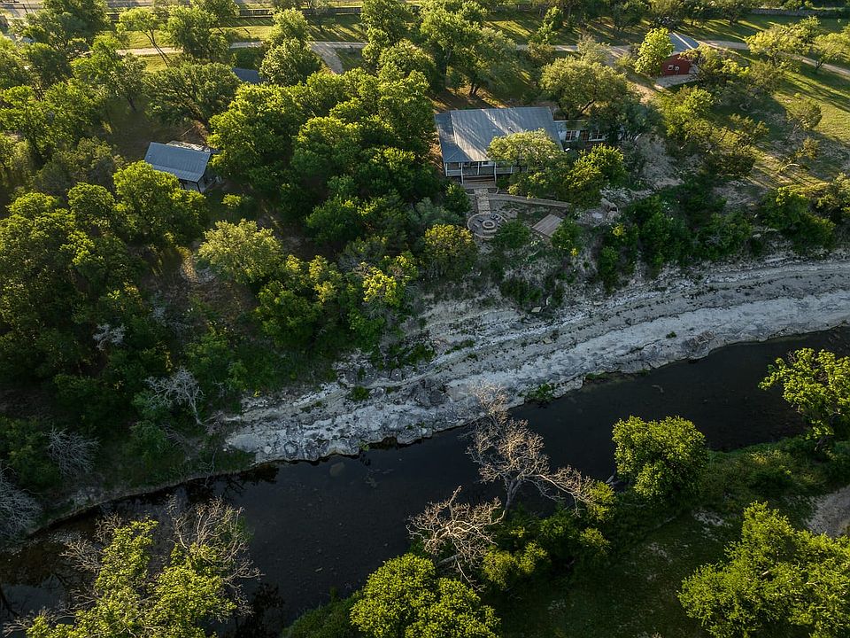 Creekhouse - Just steps away you'll find the centerpiece of the headquarters, the 900 sf Creekhouse. “Brilliantâ€, really may be the best way to describe this structure. Built in 2018, this space was designed by the owners with family and guest gathering, comfort, and elegance all in mind. Offering a spacious living area and fully equipped kitchen with all stainless-steel appliances, gas range, honed black granite countertops and large bar-top island, and of course a full bath, the Creekhouse is like the ranch clubhouse or 19th hole, where you can slip off your shoes, kick back and watch the ballgame, enjoy a family dinner, or be utilized as the central hub for entertaining. Just outside you'll find 350 sf of patio space and a nearby firepit. Water is provided to the Creekhouse by its very own dedicated water well. This Trinity Aquifer well was drilled in 2018 at a depth of 435' and volume tested at 20-25 gpm at the time of installation.
