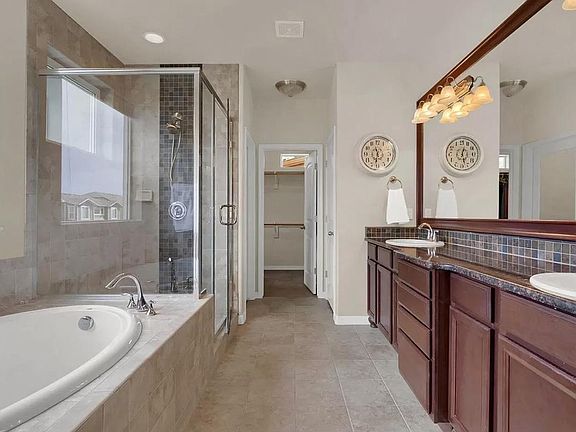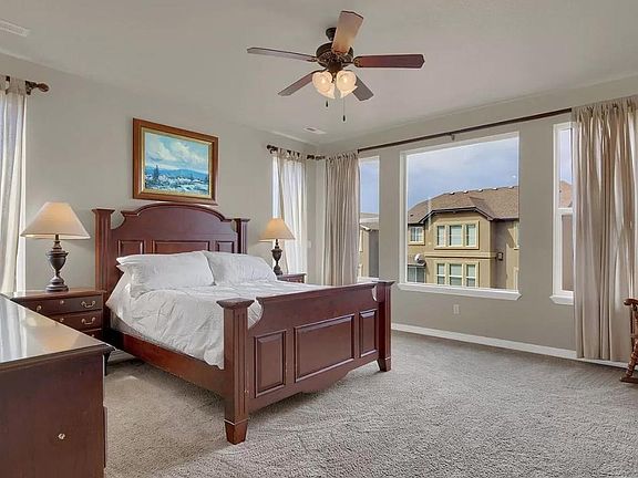 Beautiful executive home in Cordera for rent! Looks like a model with many many upgrades! Built in 2012 this two story home has four bedrooms and three bathrooms with 2455 finished square feet with an additional 1067 square feet in the unfinished basement. Located in the convenient heart of one of northern El Paso Counties, it is close to I-25. Spacious sunshine and a fantastic flow awaits. Covered front porch entry and all hardwood main level amplifies the elegance of 2 furnaces, and central air. Tandem three-car garage with lots of storage. Only half a block from park. Upgraded kitchen has soft-closing cabinetry, granite slab counters, stainless Kitchen-Aid appliances (including gas range). Built-right details like 9 foot ceilings on all levels (even the unfinished basement). Linen Buffet and laundry both upstairs. Gorgeous, luxurious master bath with granite double vanities, glass shower surround and soaking tub. Spacious walk-in closet with supplemental natural light. Three secondary bedrooms with ample closet space in each for the perfect four bedroom arrangement upstairs. The wood floors enjoy the companionship of oversize floor trim, millwork and an upgraded stone masonry fireplace with built-ins in the main level family room. The reserved front living room has a friendly picture window looking out on the covered front porch and yard, and doubles as a home office or flex space. The height of the ceilings are further magnified by large windows throughout the property including picture windows to rear in the family room and master bedroom. Quality cabinetry throughout with granite slab vanities in both upstairs baths. 16x12 rear concrete patio, 17x10 covered front porch, 24' long standard bay garage with nearly 8' garage door height, and 32'+ long tandem bay. Located in a premier subdivisions with extensive trails, under-passed bike lines, reservable recreation center, fitness center, and seasonal saltwater pool. D20 neighborhood schools: Chinook Trail Elementary, Challenger Middle School and Pine Creek High School. Walking distance to elementary school. Fenced in back yard with lots of space for entertaining and barbecuing. Cordera community has award winning parks including the Grand Lawn with 41 plus acres of open space and 4.5 miles of trails. Cordera Community Center has a heated outdoor pool complete with kid's splash zone and zero depth entry. State of the art fitness classes, multipurpose rooms with 5 plus acres. Engaging family-friendly events, programs, and parties are offered by outstanding organizations like the YMCA. Minimum 1 year lease. No smoking. Pet deposit required for pets.
