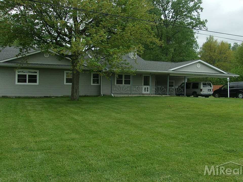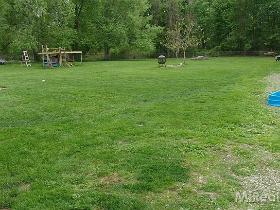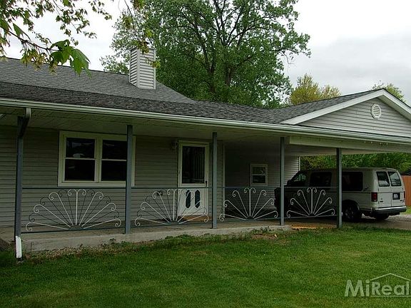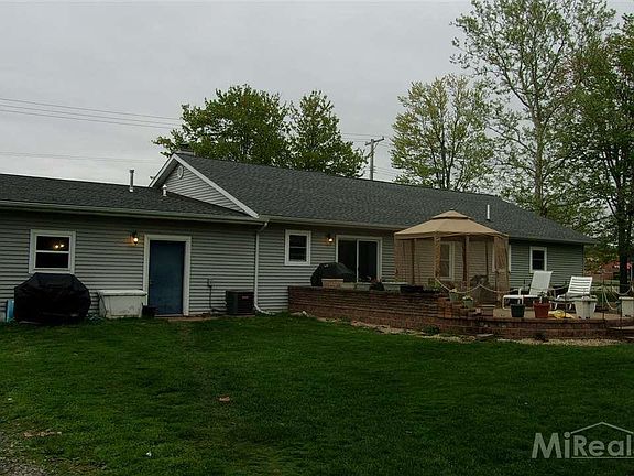 3 bedroom 2 bath ranch, large greatroom w/cathedral ceiling, woodburning stove. Walk-in pantry,, master bedroom w/walk-in closet, brick patio, pole barn, big fenced back yard, wood shed, central air, city water, across from middle & elementary schools.