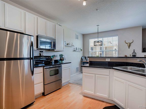 Welcome home! This 2 bed, 2 bath condo has everything you need! First time buyer? Looking to downsize? This condo is the perfect size, with all the right amenities! Enjoy the open concept living/dining/kitchen area. Each bedroom has it's own bathroom and balcony. Spacious kitchen with high-quality upgrades, including 42-inch refurbished cabinets, slab granite counters, stainless steel appliances, and plenty of counter space. Large master bedroom with full, en-suite bath, walk-in closet and private balcony. The large, open living area has a gas fireplace, ample natural light, and patio access. Both patios look out to open space! The Laundry room holds full size washer/dryer. There is additional storage in closet off patio. Easy access to the Cherry Creek Trail system for walk, run and biking. Extensive amenities including clubhouse, fitness center, pool and hot tub, large park with playground, and sand volleyball court.