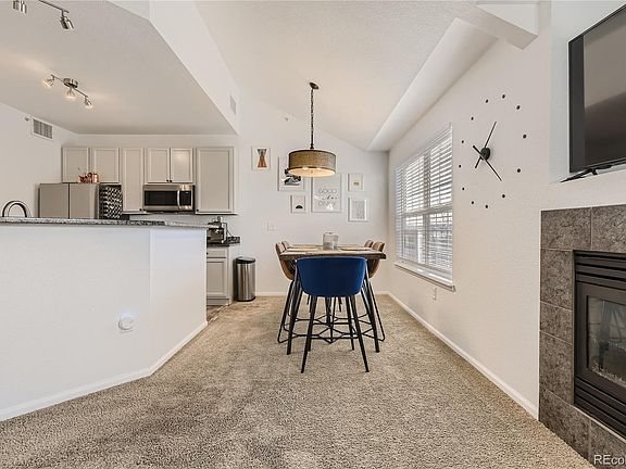 As soon as you walk in, this well appointed, rare, 3 bedroom, 3 full bathroom corner penthouse will instantly feel like home. The vaulted ceilings and arched doorways give it an open, inviting feel while the new Home Decorators Collection window coverings will cozily shut out the world. Snuggle up to the family room fireplace or retreat to one of the two main floor master suites, each with their own walk-in closet and balcony! The third bedroom and full bath upstairs is perfect for teens or guests or a private home office! Don't miss the large walk-in under stair storage area! Recent upgrades include new stainless appliances, granite counters and upgraded 42" kitchen cabinets (2022), all new Hunter fans (2022) and all new lighting(2022)! The main floor laundry room including the 2021 Samsung washer and dryer will make laundry a breeze! This unit is one of the largest units in Prairie Walk with lots of windows making it airy and bright! The two adjacent carports directly across from the condo are convenient and secure. With the Cherry Creek Trail right outside and E-470 and shopping nearby, this condo is the perfect location for work or play. (HOA fees include the pool, fitness center and adjacent park with beach volleyball and children's play area. The pool, fitness center and resident mailboxes are secured through key fob access for added security).