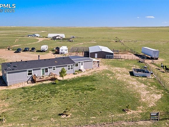 Welcome to this exceptional 40-acre property located in Rush, Colorado. This well-maintained double-wide home offers both comfort and functionality, with ample space to create your ideal rural lifestyle. The expansive 40 acres are fully fenced and thoughtfully divided into separate pastures—perfect for raising multiple types of livestock or rotating animals for optimal grazing. A large barn equipped with electricity and stables enhances the property’s farm-ready appeal. The home features an attached two car garage, a spacious laundry room with baseboard heating, and a separate storage area for added convenience. Additional highlights include RV hookups, making it easy to accommodate guests or additional living space. Inside, the home boasts three bedrooms, a full bathroom, and a 1.75 bathroom in the primary suite. The living room is centered around a cozy fireplace, ideal for staying warm during Colorado’s winters. A generously sized dining room provides a great setting for family meals and entertaining. Recent updates include a new roof installed just one year ago. Don’t miss the opportunity to make this versatile and scenic property your own. Schedule a visit today to experience all it has to offer!