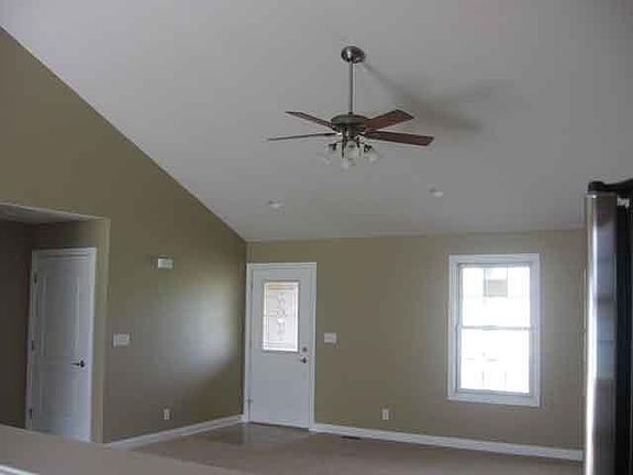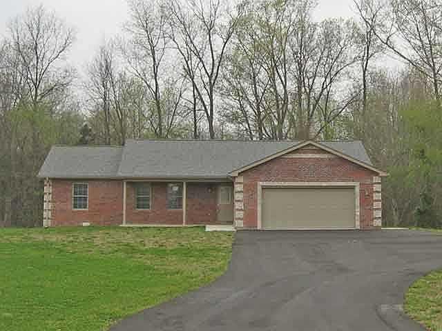 2 wooded acres & new construction all brick ranch w/split floor plan. Contemporary design offers open great rm w/vaulted ceiling, beautiful kitchen equipped w/custom cherry cabinets, solid surface counters, bar, stainless Whirlpool appliances & ceramic tile backsplash & flooring. MBR has tray ceiling, huge walk-in closet & spacious full bath w/ceramic tiled shower & double sink vanity. Ceiling fans, separate laundry rm & 20x12 wood deck overlooking the woods.