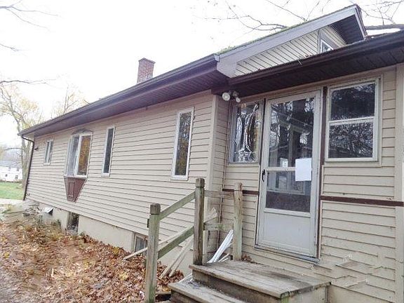 Angola- 2 bedroom bungalow ranch home that is walking distance to Lake Erie! Featuring vinyl siding, full basement, enclosed porch, first floor laundry room and a garage with studio above it! All on a 300' deep lot! Use for summer cottage or year round living!! This home is not mortgagable, new roof is needed on home and garage/studio. Cash offers please!