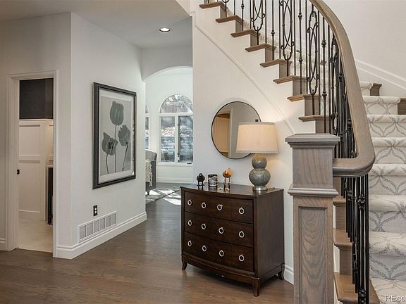 Gorgeous Highlands Ranch home on a private cul-de-sac in the prestigious Hillcrest neighborhood. This meticulously updated 2-story will not disappoint. Perfectly blending sophistication & comfort, you will find an atmosphere of pure luxury. Sitting on a ½ acre of pristine back yard, fully fenced with waterfall. Inside, you’re immediately captivated by the beautiful, curved staircase & warmth of real oak hardwood floors that run throughout the main level. The formal dining room is ideal for the seasoned host. The white gourmet kitchen boasts quartz countertops, marble backsplash with hand cut crystal inlay, stainless steel appliances & walk-in pantry. A spectacular limestone fireplace with mantel becomes the focal point of the family room providing a cozy atmosphere. The den offers both functionality and style with desirable built-in shelving. As you ascend to the second floor, a luxurious primary suite awaits + 3 secondary bedrooms. The primary suite is a haven of relaxation, complete with a bay window + 5pc bath featuring granite countertops, large soaking tub & generously sized walk-in closet. The basement is an entertainer’s paradise – a built-in dry bar with a beverage fridge and microwave + a built-in for the TV & components provide a space that is ideal for friends and family. In the basement you’ll also find the 5th bedroom & ¾ bathroom. Escape to the private back yard where the large deck, trickle of the flagstone water feature & beautiful terrace landscaping provides a space to entertain & relax. The attention to detail in this home is evident and includes improved insulation + 3M tinting on all windows & skylights. Located in Douglas County Schools and a short distance from the award-winning Valor Christian High School + multiple top charter schools. Enjoy access to all Highlands Ranch rec centers, community pools & walking trails. Located 1.3 miles from C-470 and near the I-25 / DTC corridor.
