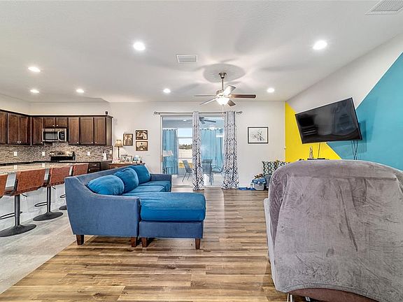 Don’t miss your chance to own this 4 Bedroom/2 Bath Summercrest home PRICED TO SELL! Situated in a gated community of newer homes, this residence offers both comfort and style with an open floor plan featuring low-maintenance luxury vinyl plank and tile floors, high ceilings, and modern LED downlighting. The spacious, light-filled living areas include a generous gathering room featuring glass sliders that lead to a screened Florida room and outdoor patio perfect for outdoor entertaining or quiet relaxation. The chef’s kitchen makes cooking a delight with granite countertops, abundant cabinet space, stainless steel appliances, a pantry for extra storage, and bar-height seating for casual dining. The Owner’s suite is a private retreat with a transom window for natural light, a walk-in closet, and an ensuite bath complete with a double sink vanity, tile-lined walk-in shower, and a separate soaking tub for ultimate relaxation. As a bonus, this home features a fully paid-for whole-home solar system that harnesses the power of the sun, helping you reduce energy consumption and enjoy significant savings on utility bills. Ample storage throughout the home, along with a convenient storage shed, adds everyday practicality, while a battery-operated generator wired to the main electrical panel provides extra peace of mind. The community also offers a great location with convenient access to shopping, dining, public parks, medical facilities, and a short drive to The Villages. Outdoor enthusiasts will also enjoy a variety of amenities and attractions within easy reach, such as Santos Trails, a popular destination for hiking and biking, and Baseline Golf Course, just over one mile away.