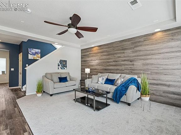 Welcome to this charming and meticulously maintained home perfectly situated in the thriving Fountain community of Cumberland Green, just moments from military installations, schools, parks, and local amenities. Boasting a generous 2,700 square feet, this bright and inviting property offers four well-sized bedrooms and 2 and a half baths. The heart of the home is its open-concept living area, featuring a spacious kitchen complete with a large island, abundant cabinet space, and modern stainless appliances. The whole home is equipped with a water filtration system for crystal clear water, and the kitchen sink has a reverse osmosis faucet. Dining and living areas have a perfect flow, making it effortless to host gatherings or enjoy family nights. Also on the main floor is a large flex space that could be used for an office, playroom, library or anything your lifestyle demands. From the garage, there is a large, versatile drop zone and a half bath. Upstairs, the serene primary suite provides a restful escape, while three additional bedrooms and a conveniently located laundry room add to daily comfort and convenience. A versatile loft awaits your creative touch — ideal for a home theater, workout area, or playroom. Outside, the well-sized yard and attached two-car garage offer both functional ease and room to spread out and enjoy life.