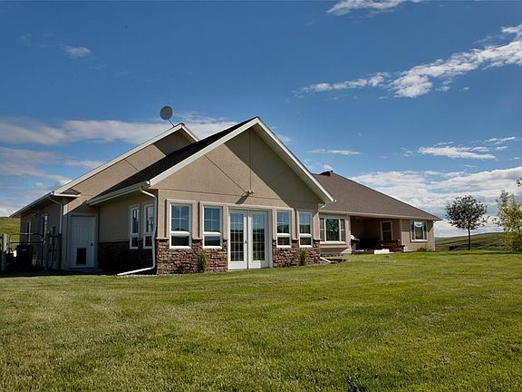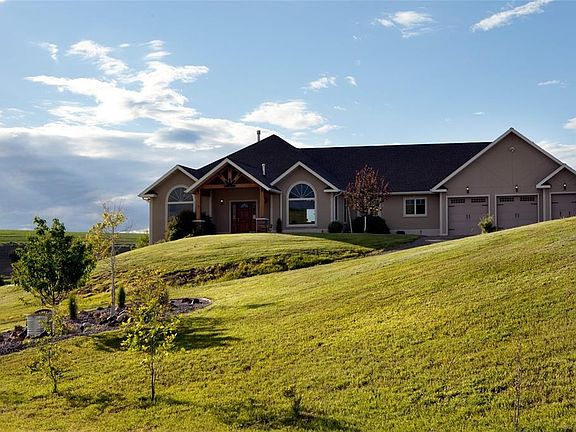 Enjoy the peace and quiet from the lifestyle this Manhattan property offers. Custom Ranch Style energy efficient home with a very comfortable open design. Abundant natural light with large windows capturing spectacular views. Formal and informal dining areas, Granite counter tops in kitchen with large breakfast bar and pantry. Roomy Master Suite with two large closets and separate soaking tub. Spacious laundry/mud room with ample storage and half bath adjacent. Cathedral ceilings in living room with fireplace. Nine foot walls and radiant floor heat in lower level with family room, rec room, extra room, two bathrooms, two bedrooms and gear room for seasonal recreational storage. Three car garage is insulated and a new exercise room recently added. Backyard is tastefully landscaped and fenced for dogs. Terrific barn with nice tack room and stalls for livestock and hay storage. Frost free livestock waterer accommodate corrals and separate pastures for easy grass management.