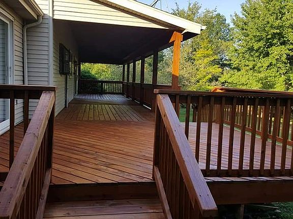 Welcome to your very own personal retreat! This 4 bedroom, 3.5 bath, timber-lined haven boasts 1.71 acres plus a 40x44 outbuilding built in 2001 complete with electrical, 16' side walls and loft. It has gorgeous plank wood floors, newer carpet, 2 wood-burning fireplaces, 1st floor office, walk-out basement with bar and wood burning fireplace, a massive 2-tiered deck, no backyard neighbors! The wooded and private setting is a nature lover's delight in a highly desirable area. Potential 5th bedroom in basement (no egress). Flooring and countertops are newly updated in kitchen and 2 baths. The extra large laundry room, washtub sink, Unit 5 schools and friendly neighbors that can't be beat are a bonus! Schedule your tour today! Appraisal completed in August 2019 and the value was $290,000!!