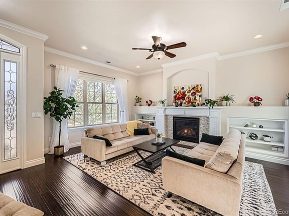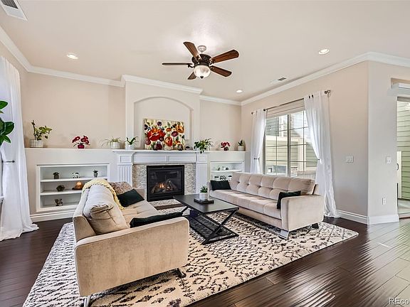 Welcome to 9182 Ridgegate Parkway, a beautifully updated 3-bedroom, 3-bathroom townhome that blends modern luxury with thoughtful care. From the moment you step inside, you’ll feel the warmth of a home meticulously maintained and upgraded to enhance your lifestyle with beautifully crafted crown molding throughout. The gourmet kitchen is a chef’s dream, featuring a gas cooktop, double ovens, a wine and beverage fridge, a trash compactor, a large pantry, soft-close cabinets, under-cabinet lighting, and above-cabinet outlets. It’s perfect for cooking, entertaining, and creating memories. The owner’s suite is a true retreat, offering a spa-like bath with marble finishes, a spa tub, a separate shower, double sinks, and two spacious closets. Relax by the cozy gas fireplace or step onto your private balcony to enjoy serene surroundings. On the Fourth of July, the balcony becomes magical, offering stunning views of multiple fireworks displays. Upstairs, the loft separates the owner’s suite from the two guest bedrooms and guest bath, ensuring privacy and flexibility. The family room, with its inviting gas fireplace, is perfect for gathering, while the laundry room and powder room add convenience. Step outside to the private patio, a tranquil space for entertaining or relaxing, complete with a gas fireplace, tiled flooring, a gas grill hookup, and a gated entrance. The 2-car garage, with built-in shelving, a storage closet, and a newly coated floor, ensures plenty of storage and organization. The driveway behind the garage allows for additional guest parking. Not all townhomes in this community have this. Living here is effortless, with every detail designed to elevate your experience. The Ridgegate community offers a peaceful, well-maintained neighborhood with unbeatable convenience. Close to shopping, dining, parks, and major highways, and within walking distance to the library, art center, and South Suburban Rec Center.