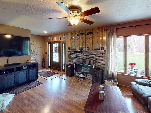 This one of a kind must-see 2 story home could be yours! Home features 4 bedrooms, 2 bathrooms, 2 car attached garage. Beautifully landscaped grounds and wrap around driveway on just over an acre of land. Main floor has 3 bedrooms and 1 bath. Upper level has family room, 2 bedrooms and 1 bath. Upper level has 2 walk-out decks. There are 2 fireplaces, one on the main floor and upper level. There are even storage compartments in the staircase. Did I mention the pool house? Heated pool is 16x32. There's also a hot tub, sauna, and bathroom. Great for entertaining guests!