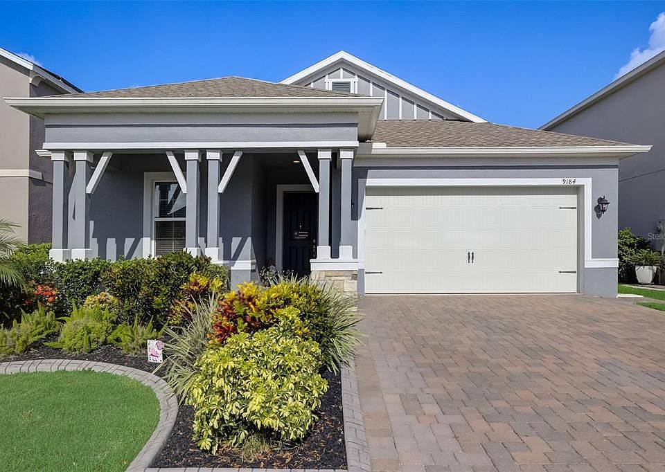 Make this beautiful semi-custom home your own! Situated in the sought-after four corners area this home is beautiful, unique, and in pristine condition. The number of upgrades and custom additions will not leave you disappointed. As soon as you open the front door you are welcomed by a beautiful view of the open floor plan directly thru to the stunning custom pool. All the bedrooms in the home have been updated with California closets and beautiful ceiling fans. All bathrooms have upgraded lighting and granite countertops. The kitchen is truly the center of the home and will take your breath away with a HUGE center island highlighted by pendant lighting, and the builder's highest upgraded gourmet kitchen package complete with stainless steel appliances. The living area is pre-wired for surround sound speakers great for entertaining and complete with high ceilings and 8" doors. Not to mention there is a 4-foot extension across the back of this home that boosts your main living and master bedroom space! For work or study time, down the hall, there is a double workspace with a desk and cabinets tucked behind a gorgeous custom wooden barn door. The master bedroom is huge at the rear of the house with an oversized shower and an amazing walk-in California Closet. The backyard is a true oasis equipped with a custom waterfall pool with a programmable ambient light show. The pool is also heated by paid-off solar panels. So splash away and entertain on the beautiful travertine tile pool deck with plenty of room for seating and cooking. Not to mention the home has been outfitted with additional gas lines to accommodate an outdoor kitchen or whole home generator. Additional features include a tankless water heater, full-size laundry room with sink, custom drop zone and coffee bar, extra built-in garage storage and so much more! This property is ideally located 11 miles from Disney in the Westside corridor with many restaurants and shopping nearby. Community amenities include a pool, cabana, playground, dog park, and picnic area. HOA fees include cable and internet! We don't even need to say it but....It won't last long! Check out the Matterport scan and aerial video!