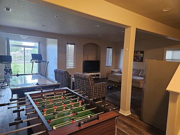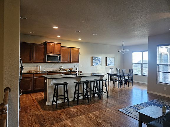 Gorgeous Ranch Home in Cordera with Spectacular Mountain Views! This 5 bedroom, 4 bathroom home offers many amenities throughout! Gourmet kitchen includes a double oven, gas countertop stove, breakfast bar, and pantry! Large living room includes a see-thru fireplace to enjoy inside or outside on the enclosed deck! The Master Suite offers a 5 piece bath with a walk-in closet. 2nd bedroom & guest bath also on main level. Enjoy the spacious family room in the basement with built-in surround sound and walk-out to covered patio! The 3rd bedroom in the basement includes a private bath and walk-in closet. The 4th and 5th bedrooms share a full, guest bath. A wet bar and mini fridge completes this large, finished basement! Pool, gym, trash, and park access is covered in the HOA dues that the homeowner will pay, and they can be used at no expense to tenant! Canadian and U.S. Military welcome! 2+ years leasing options are desired. Please contact for further details.
