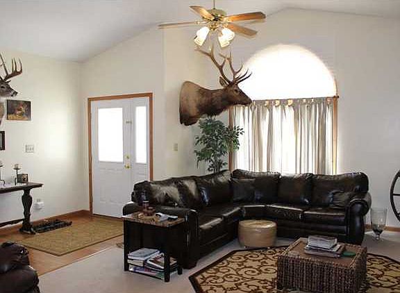 BEAUTIFUL RANCH ON 5 ACRES, OPEN FLOOR PLAN, GREAT ROOM WITH VAULTED CEILING AND FIREPLACE, LAMINATE FLOORING, SIX PANEL DOORS THROUGHOUT, NEUTRAL DECOR, MASTER BEDROOM WITH VAULTED CEILING AND ATTACHED MASTER BATH, 16X8 SCREENED PORCH, ADDITIONAL 10X14 BUILIDNG WITH CEMENT FLOOR, CEILING FANS, WOODS, BASKETBALL HOOP/PAD, LOTS OF PRIVACY.