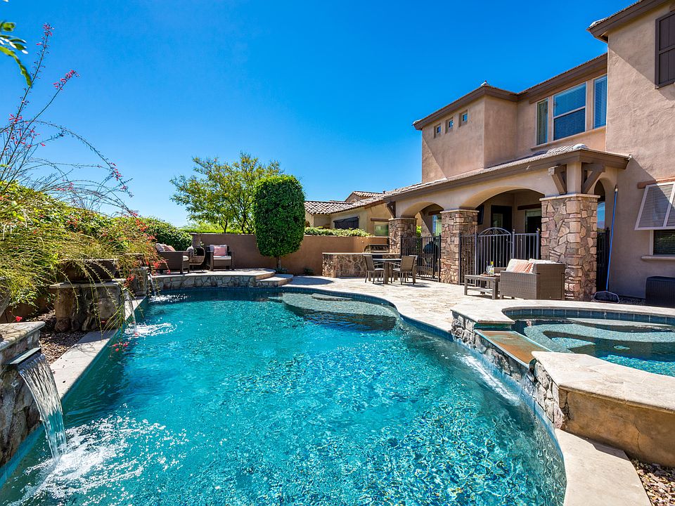 Beautifully cared for & freshly updated by the owners, this perfectly appointed cul-de-sac home in gated DC Ranch offers a light neutral color palette & an easy livable floor plan. First floor living includes charming formal living & dining spaces along with a newly upgraded chef's kitchen open to family room with stone fireplace/TV wall. First floor also includes guest bedroom & full bath. Second level offers intimate master retreat with luxurious bath, spacious open loft plus two additional bedrooms and bath. Enjoy private outdoor living with refreshing fenced pool & spa, built-in BBQ and wonderful covered patio space. Live the DC Ranch Lifestyle just minutes from shopping, dining & amenities. Welcome Home! (See homeowner improvements & floor plan in Documents Tab)