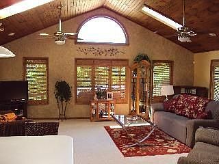 Beautiful home built for entertaining and relaxed living in country setting. Gorgeous cedar wood vaulted ceilings. Plenty of natural light from large windows & skylights. Wrap-around deck has gazebo & hot tub. Rec rm has pool table & big TV. Private master loft w/lots of storage. Huge pole barn & xtra large garage for cars, boats, big toys. Very clean home, private setting w/mature trees, pond, winding creek.